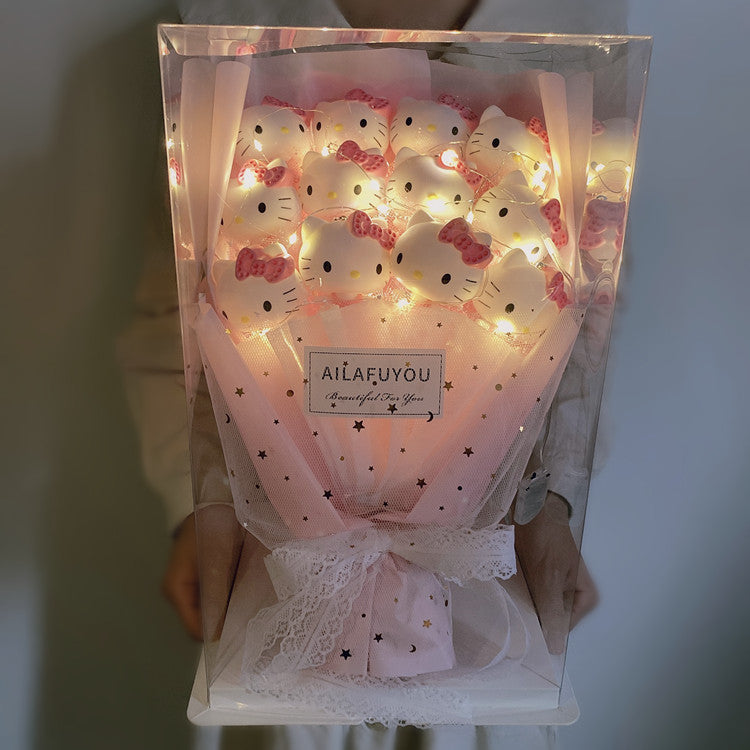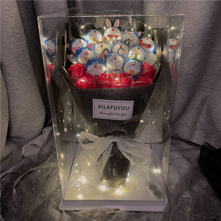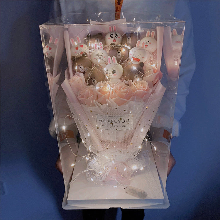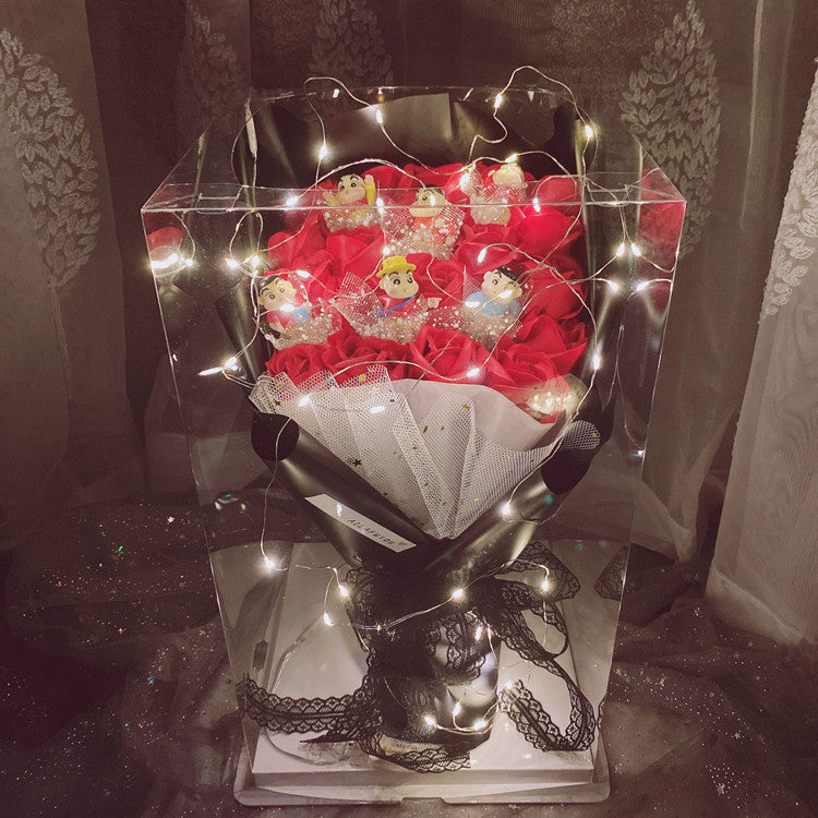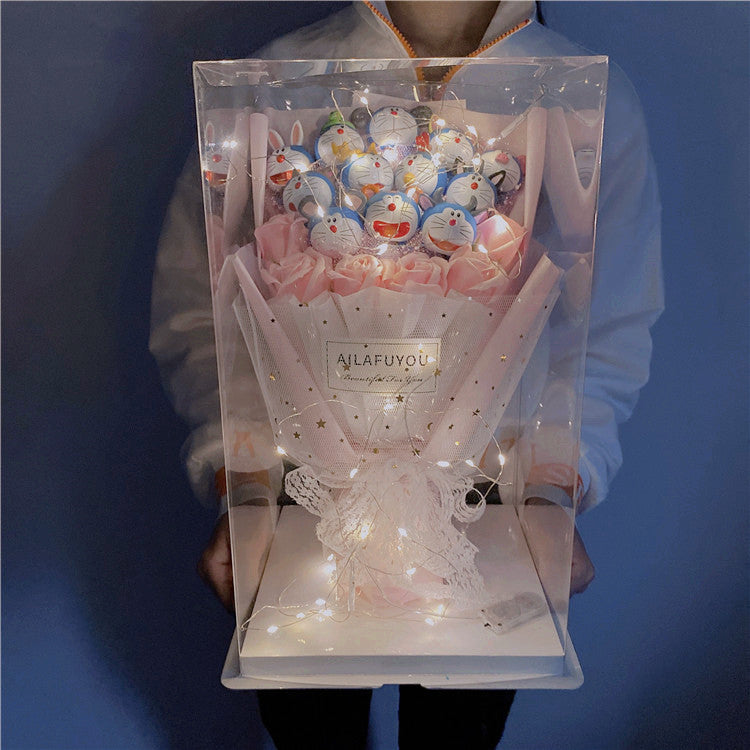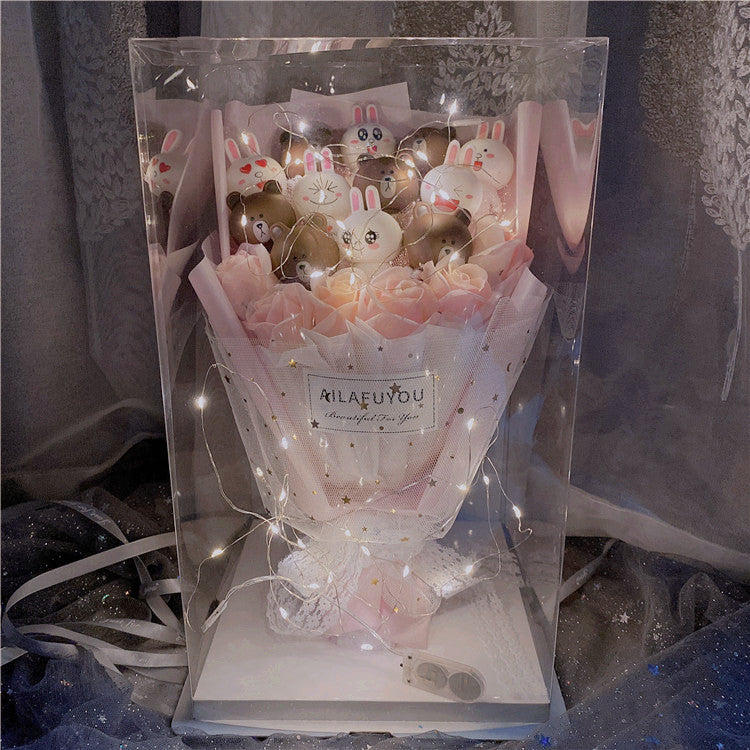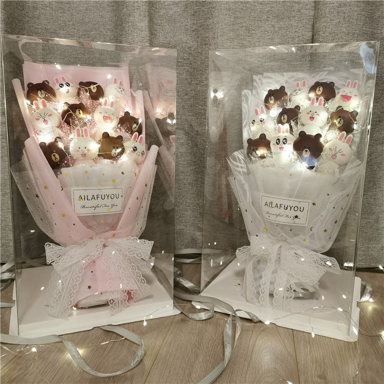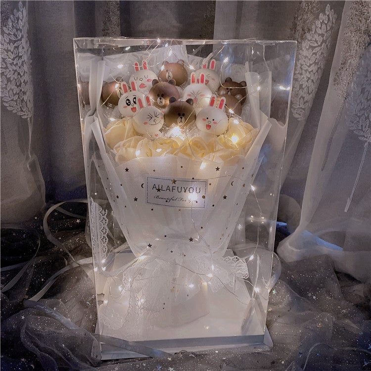 情人節禮物 生日禮物 超特別可愛卡通公仔花束LED透明禮盒(需要其他款式可聯繫客服購買)